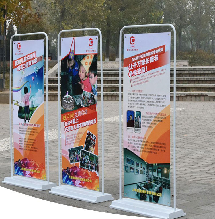 X型展架和门型展架哪个方便?门型展架携带其实也方便,但是不足点是底座,底座是一个长方形大小设计(如120*200cm门型展架的底座长93cm*宽11cm),加上采用铁质材料做成会相对重,不过重也不是不好,防风功能就会变强,门型展的杆安装后酷似一扇门,然后把画面在门中间挂起展示,画面被很好的平整展示,展架和画面结合彰显高档大气,很多婚庆场景、培训机构适合摆放。