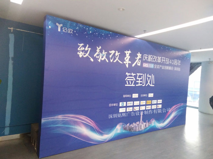 此文关键词:签名墙,签名墙材质,拉网架喷绘,快幕秀,桁架