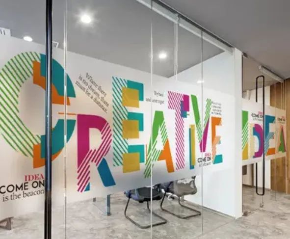 一家企业的印象离不开品牌视觉的输出,除了举行各种企业活动中的互动环节外,空间的品牌植入也是对外体现企业印象的方式之一。企业里的会议室玻璃、门窗,是空间必需品,玻璃贴可以作为文化输出的载体,同时也可以起到装饰营造氛围的目的,并具备环保性,采光性等特点。