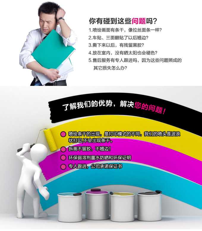2、产品售后服务:我们有专人跟单,保证所有流出的货源,必需是合格,通过严格把控,特别是遇到车身广告安装,安装后续出现的种种问题我们都会帮客人解决。