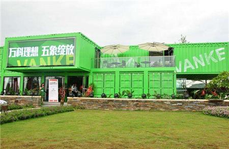 这是一个利用集装箱制作的一个接待中心,绿色的集装箱箱体广告很清新